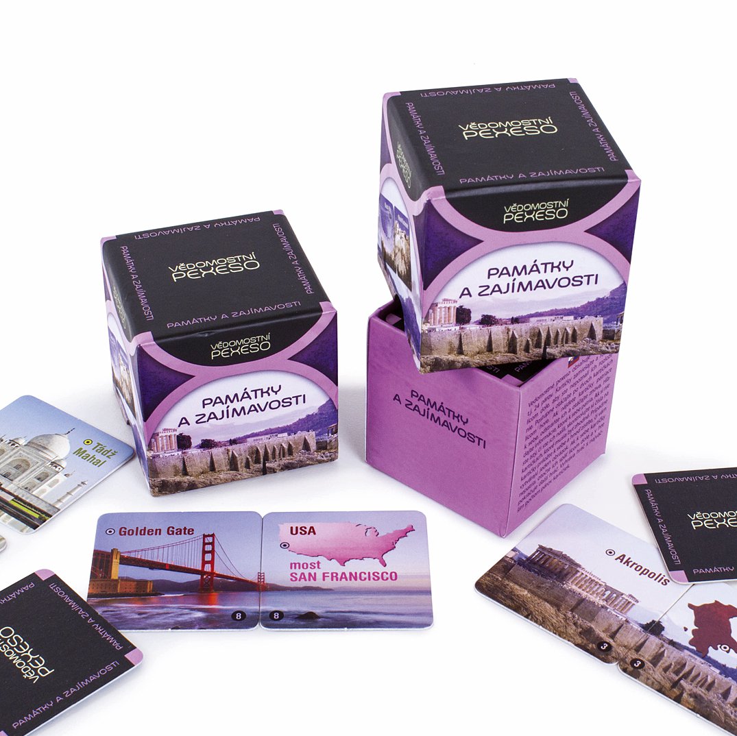 Hra vychází z klasického pexesa. Nehledají se však dva stejné obrázky, ale dvě informace, které k sobě patří. Text je doplněn i motivem tvořícím celek, jakmile se dvě k sobě patřící kartičky položí vedle sebe či pod sebe. Díky vědomostnímu pexesu si můžete oživit znalosti hlavních měst Evropy či historie, připomenout si osobnosti 20. století, projít si památky a zajímavosti, znovu se pobavit u filmových hlášek, rozpomenout se na světová nej, poznat známá i méně známá pořekadla a mnoho dalšího. Vědomostní pexesa obsahují 48 kartiček (tj. 24 párů).