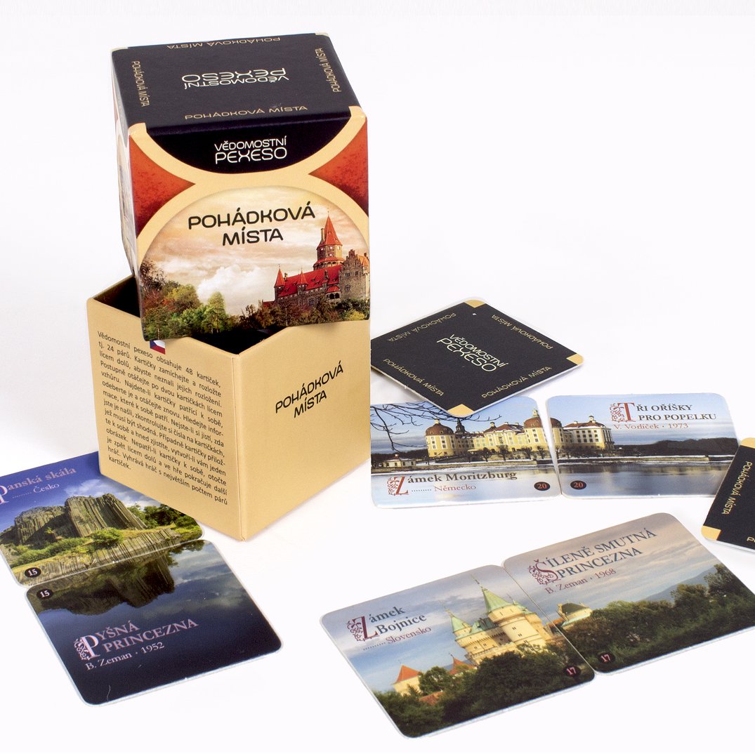 Hra vychází z klasického pexesa. Nehledají se však dva stejné obrázky, ale dvě informace, které k sobě patří. Text je doplněn i motivem tvořícím celek, jakmile se dvě k sobě patřící kartičky položí vedle sebe či pod sebe. Díky vědomostnímu pexesu si můžete oživit znalosti hlavních měst Evropy či historie, připomenout si osobnosti 20. století, projít si památky a zajímavosti, znovu se pobavit u filmových hlášek, rozpomenout se na světová nej, poznat známá i méně známá pořekadla a mnoho dalšího. Vědomostní pexesa obsahují 48 kartiček (tj. 24 párů).