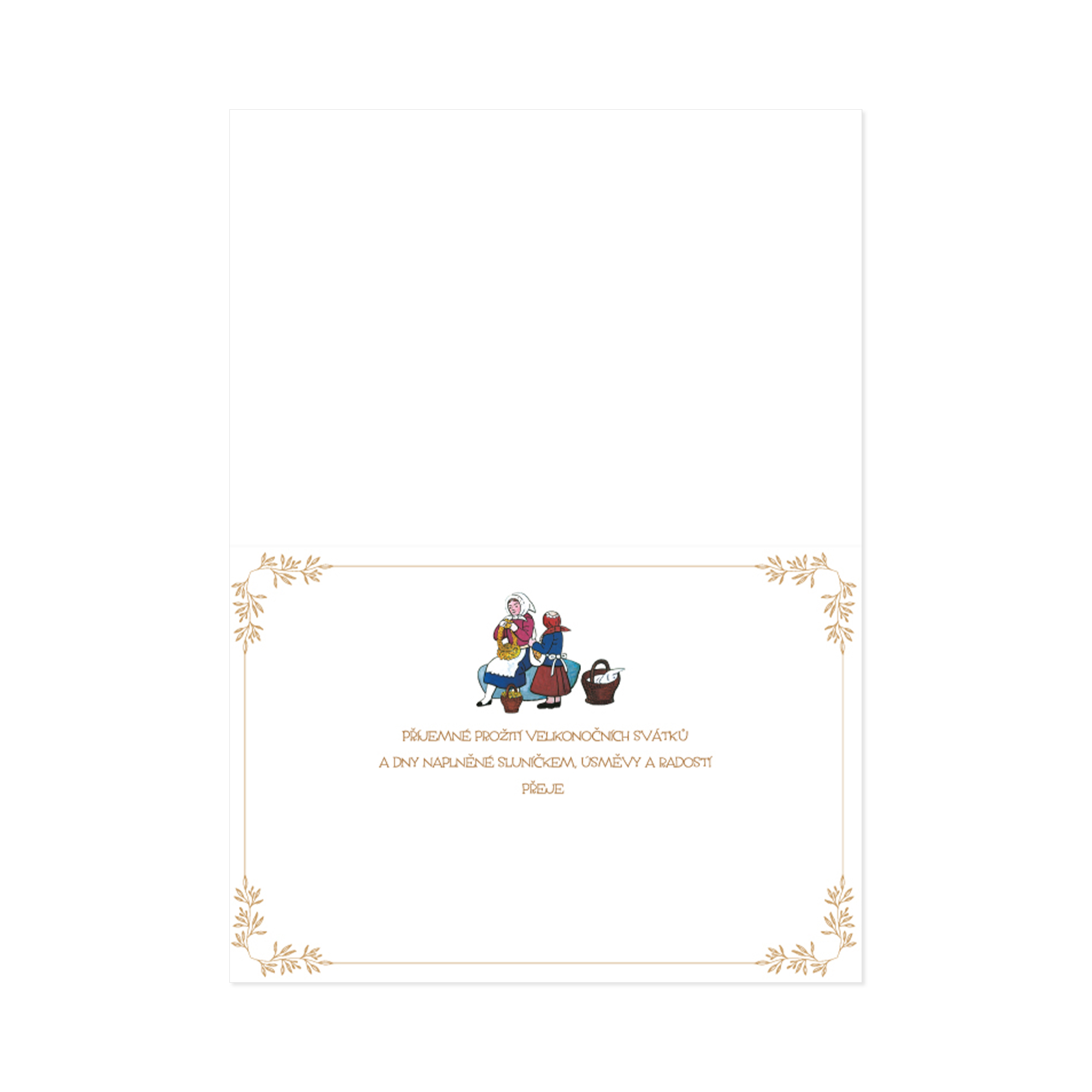 Historie papírových přáníček sahá až do daleké minulosti, avšak jejich obliba v moderní době nijak neklesá. Nadčasový motiv kresby Josefa lady Vás okouzlí nostalgickou atmosférou dávných dob. Překvapte své blízké krásným ladovským přáníčkem, které je k dostání pouze od Albi. Toto klasické papírové přáníčko je netradičně tištěné na šířku, a tak si ho obdarovaný může vystavit i jako malý obrázek. Uvnitř najdete univerzální věnování: Příjemné prožití velikonočních svátků a dny naplněné sluníčkem, úsměvy a radostí přeje (…)".  Pod textem pak zůstává dostatek místa pro váš podpis, případně vlastní vzkaz. Součástí přání je i bílá papírová obálka. Rozměry přání: 19,5 × 13,5 cm