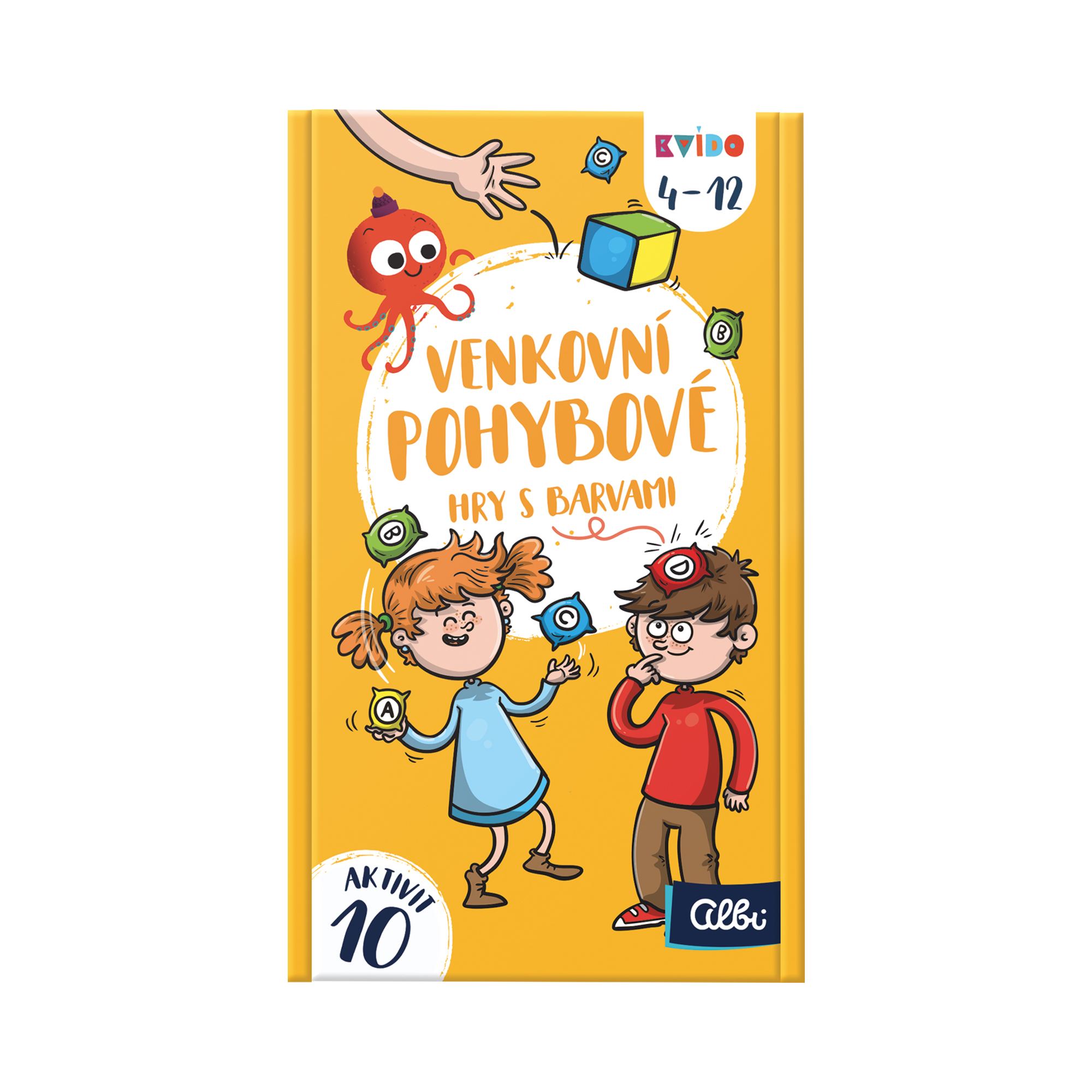 Pojďte si zasportovat pomocí originálních venkovních pohybových her. V této sadě najdete měkkou barevnou kostku a 10 házecích sáčků, na kterých jsou natištěna písmenka. Sáčky mají různé barvy shodné s těmi na kostce. Zahrát si můžete např. barevnou vybíjenou, veverčí zásoby, veselou rozcvičku, nebo další z 10 popsaných her. venkovní pohybové hry rozvíjí pohybové dovednosti, spolupráci, rozlišování barev, fantazii a slovní zásobu. Zapojte vlastní fantazii a s herními komponenty vymýšlejte nové sportovní aktivity. Venkovní pohybové hry s barvami obsahují: měkkou barevnou házecí kostku, 10 látkových házecích sáčků s písmenky, textilní sáček pro snadné sbalení hry, návod na 10 aktivit.