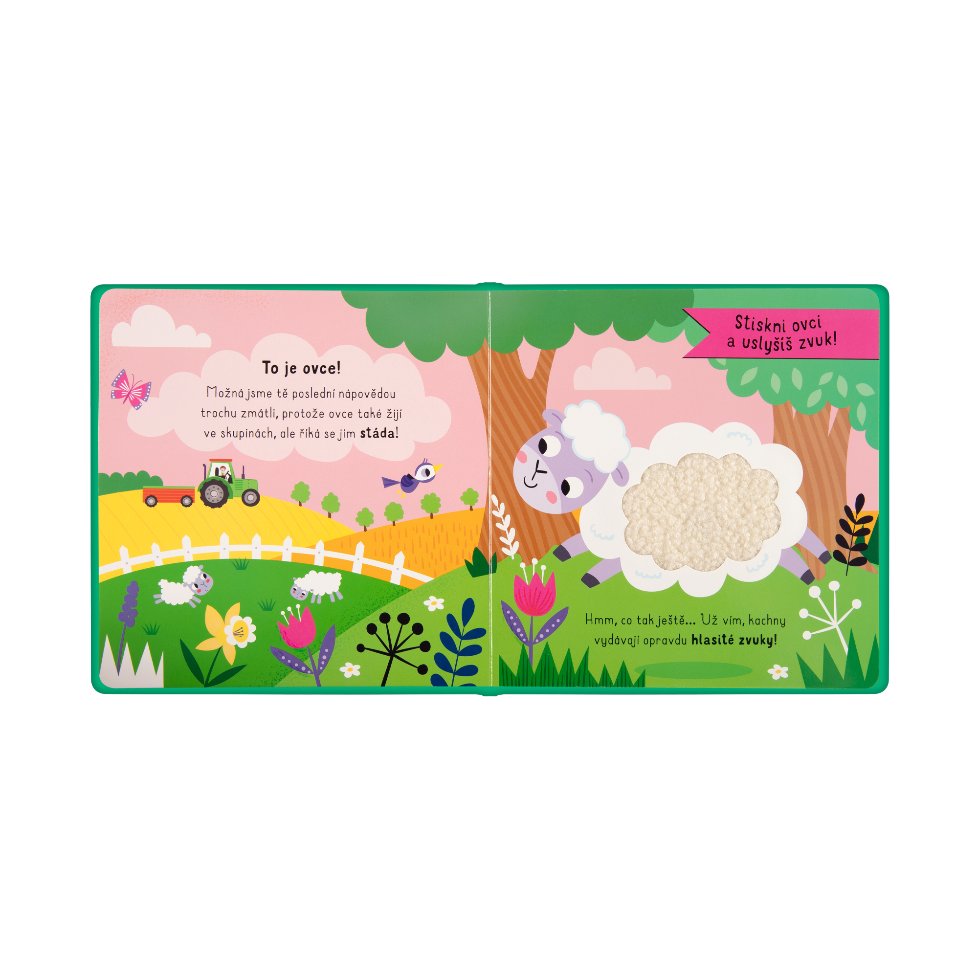 Vidíš někde kachnu? – interaktivní zvuková a hmatová kniha pro nejmenší. Na farmě žije kachna, ale kde se schovává? Vydejte se s dětmi na hravé pátrání po kachně v této zvukové a dotykové knížce pro děti od 3 let. Na každé stránce si mohou malí čtenáři sáhnout na zvířátko a pohladit si pejska, slepici, ovci, krávu i samotnou kachnu. Když dítě obrázek zvířátka stiskne, uslyší jeho autentický zvuk. Díky tomu se kniha stává nejen zábavnou, ale i vzdělávací pomůckou pro rozvoj smyslů, jemné motoriky a poznávání zvířat. Ilustrace od Sarah Wade jsou veselé, barevné a přizpůsobené věku nejmenších čtenářů. Zvukové leporelo s hmatovými prvky obsahuje vyměnitelné knoflíkové baterie (3 × 1,5V AG10/LR1130), které jsou součástí balení. Počet stran: 12 Rozměry knihy: 21 × 21 × 2 cm Ilustrace: Sarah Wade ISBN 978-80-7688-295-09