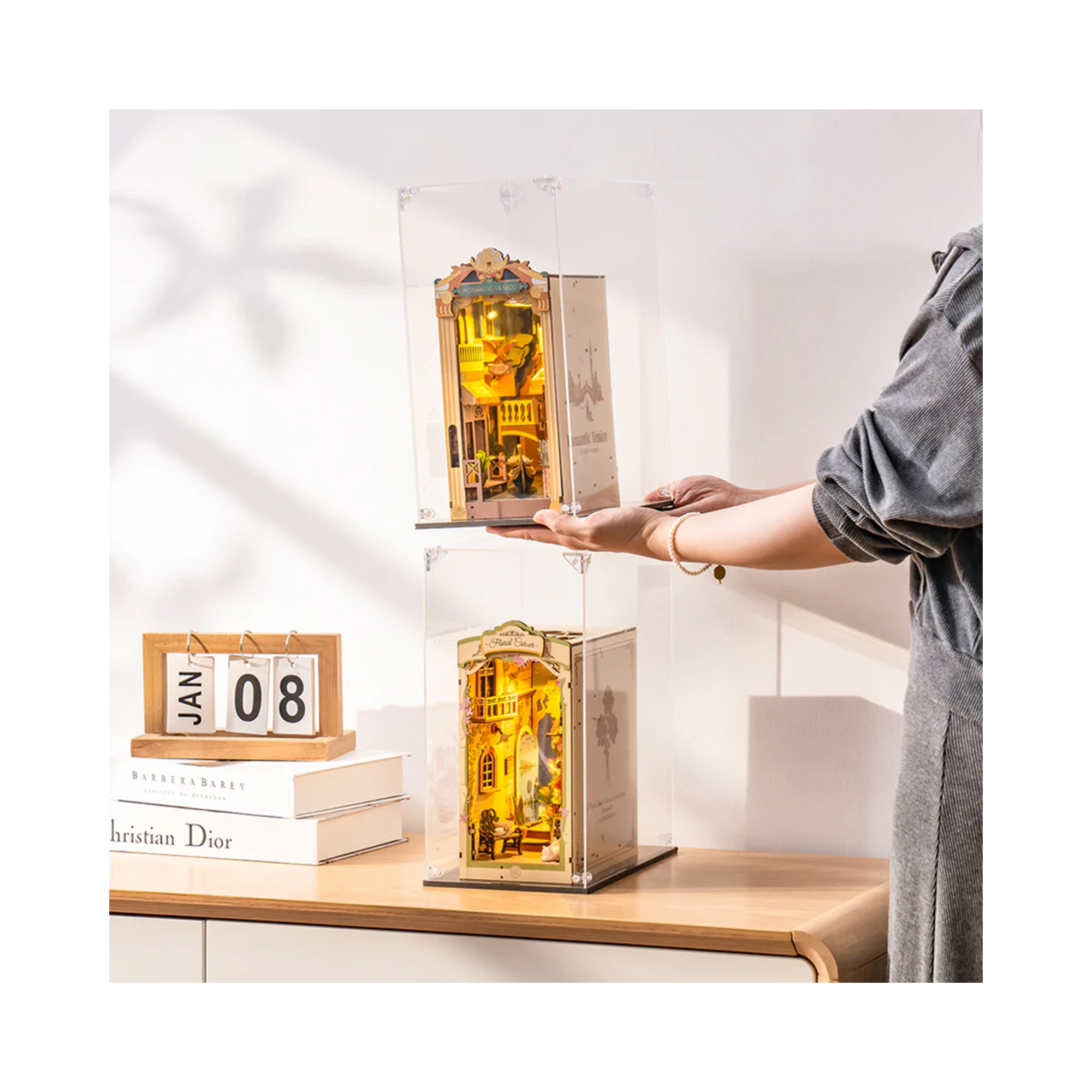 Vitrína na knižní zákoutí Robotime – průhledná ochrana pro vaše dřevěné stavebnice. Průhledný box je určen pro všechna knižní zákoutí značky Robotime a slouží jako ochrana před prachem, nečistotami a poškozením. Ochranný kryt je vyroben z kvalitního čirého materiálu a k jeho sestavení není potřeba lepidlo. Technické informace Počet dílů: 6 Náročnost: 1/5 Odhadovaný čas sestavení: 15 min Rozměry: 15 × 30 × 25 cm (š × v × h)
