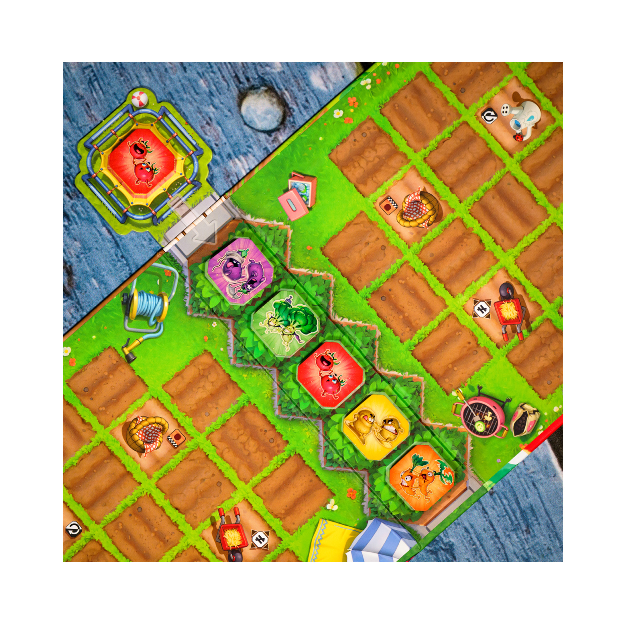 Dva zahradní trpaslíci v boji na život a na mrkev. Sázejte zeleninu ve své zahradě co nejchytřeji a sklízejte ji ve specifických seskupeních. Používejte při tom nástroje, aby vaše zahrada vzkvétala a vy jste z ní získali maximum, nebo je použijte proti svému soupeři. Buďte při sklizni zeleniny nejrychlejší a vyhrajte! Abyste vyhráli, musíte dělat taktická rozhodnutí při používání nástrojů ve své zahradě a při posílání krtků do soupeřovy zahrady. Hra Zahradní bitva obsahuje: 1 herní plán, 1 papírovou obálku s 8 žetony nástrojů, 1 žeton prvního hráče, 1 destičku trampolíny, 2 trpaslíky, 1 bodovací stupnici, 60 žetonů zeleniny, 1 pytlík na žetony, česká pravidla.