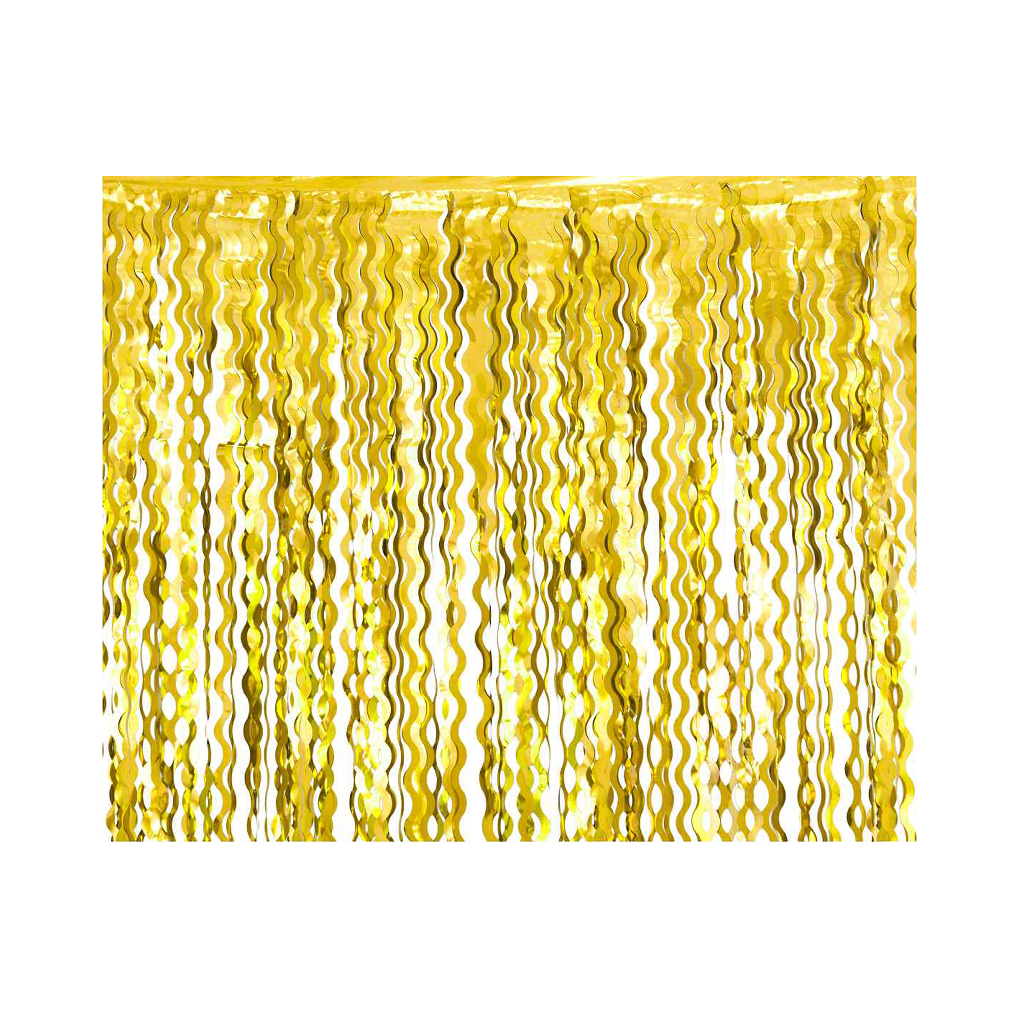Fóliové závěsné pozadí ve zlaté barvě vhodné k dekoraci fotokoutku, sweet baru, narozeninové oslavy nebo jiné slavnostní příležitosti. Materiál: proužky ze speciální fólie Rozměr: 100 × 200 cm Balení obsahuje: 1 ks závěsu